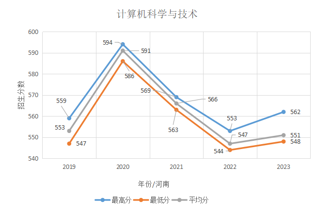 计算机科学与技术专业在河南省招生情况统计