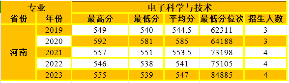 电子科学与技术专业在河南省招生情况统计