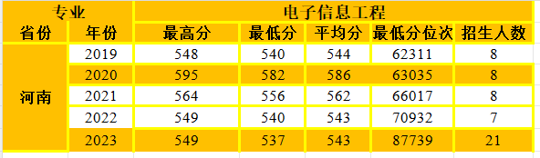 电子信息工程专业在河南省招生情况统计