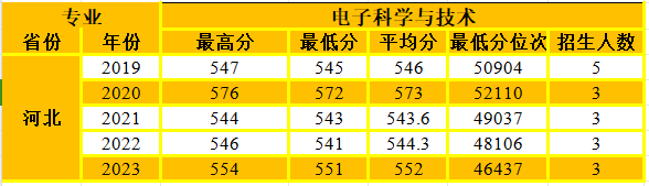 电子科学与技术专业在河北省招生情况统计