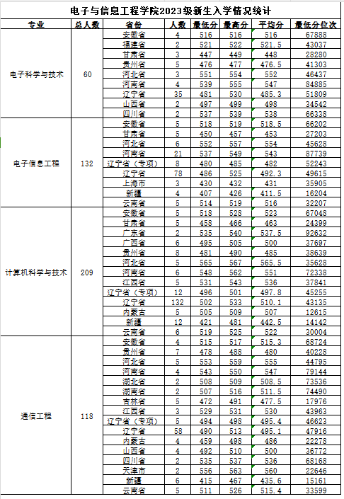 四个专业生源质量稳中有升,辽宁生源占据60%,计算机、通信工程和电子信息工程专业较去年分别提升了5分、4分和2分,电子科学与技术专业保持不变,位次较去年分别提升约3500-1500!