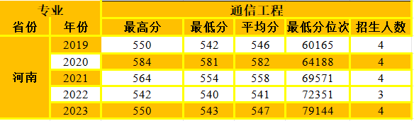 通信专业在河南省招生情况统计