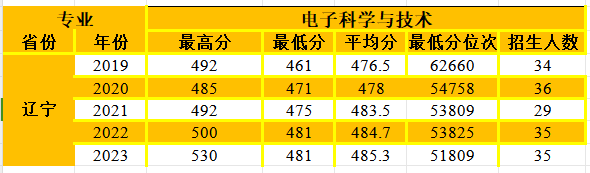 电子科学与技术专业在辽宁省招生情况统计