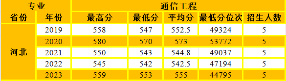 通信工程专业在河北省招生情况统计
