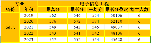 电子信息工程专业在河北省招生情况统计