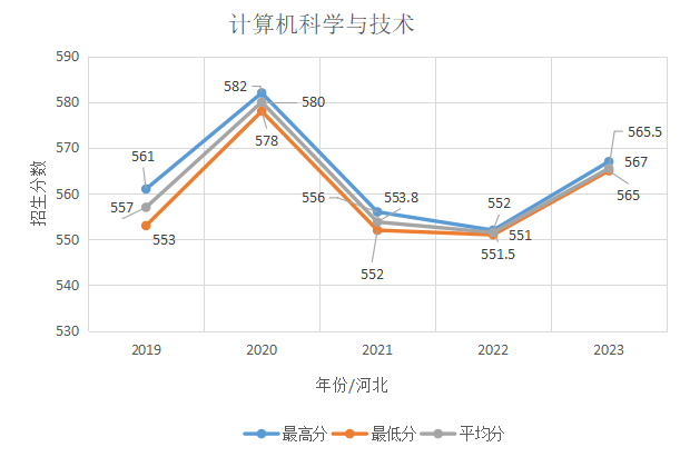 计算机科学与技术专业在河北省招生情况统计