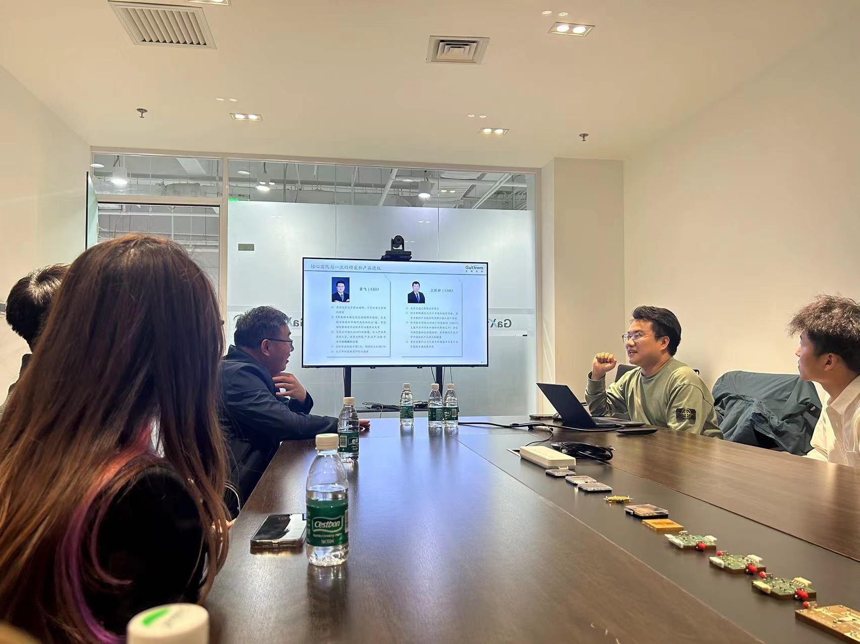 4月9日晚,南敬昌教授一行到优镓科技(北京)有限公司进行座谈交流并参观公司及实验室,其主要业务领域为GaN集成化功率模组、GaN分立功率器件、GaAs HBT功率器件等,双方就业务范围、人才需求和就业岗位等展开交流,增进校企双方的了解,为91直播