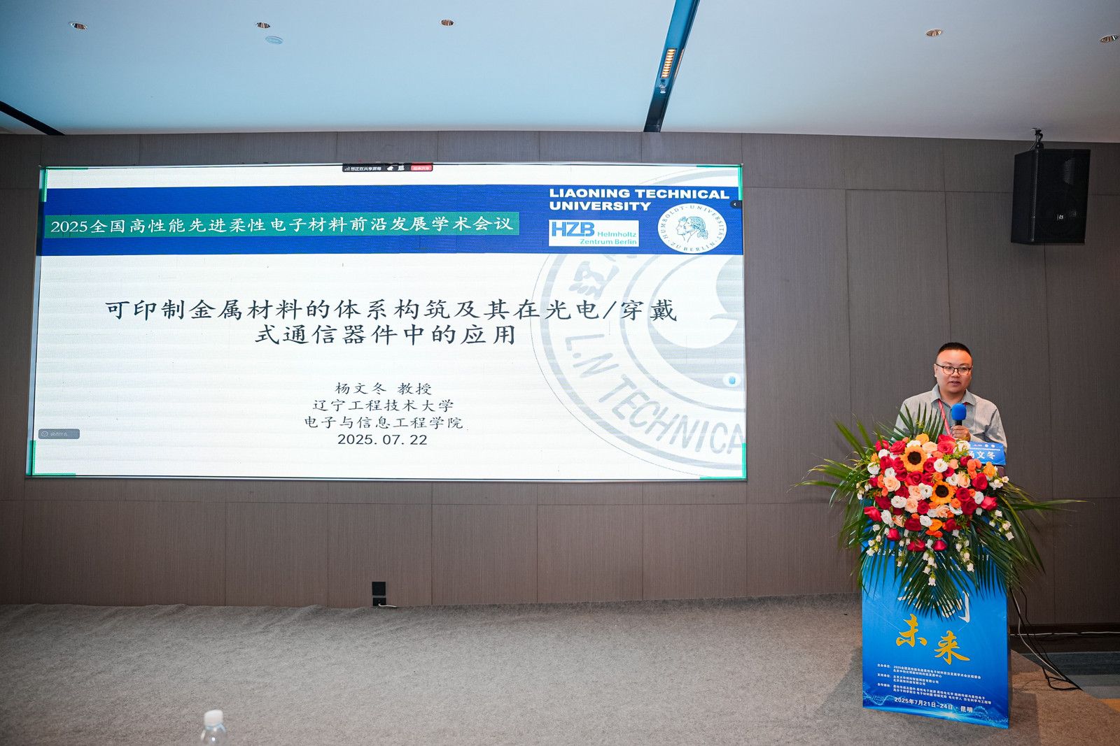 杨教授以《可印制金属材料的体系构筑及其在光电/穿戴式通信器件中的应用》为题,系统介绍了团队在柔性电子材料领域的突破性研究。报告深入阐释了可印制金属材料的创新设计方法、规模化制备工艺及其在柔性光电转换器件、轻量化穿戴式通信设备中的高效应用,为解决柔性电子器件的集成制造与性能稳定性提供了新思路。研究紧密契合会议“推动柔性电子材料应用水平提升”的核心目标,其前沿性与实用性受到与会同行高度评价。