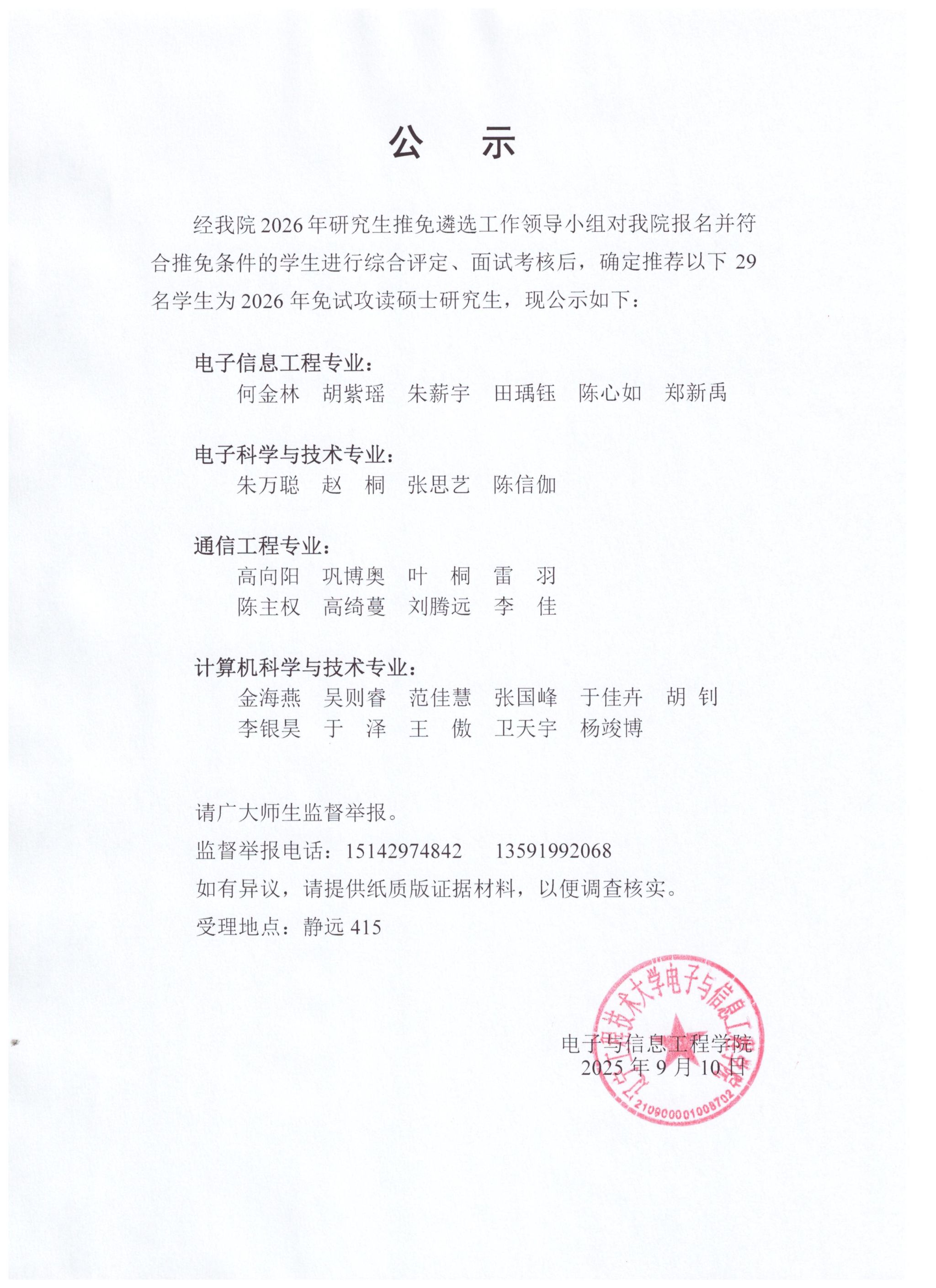 关于推免硕士研究生的公示
