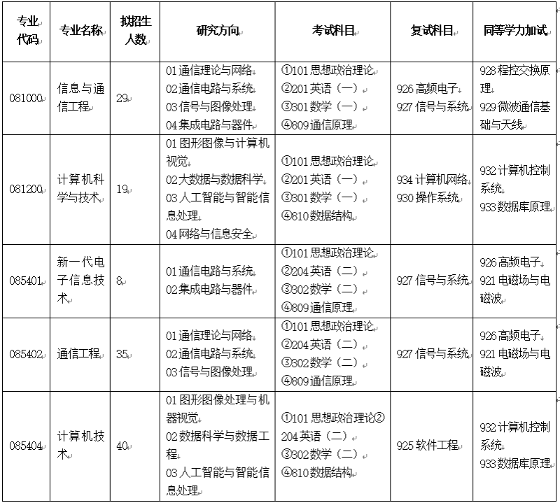 二、招生专业目录