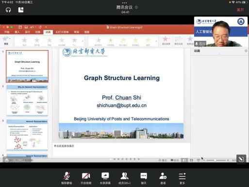 2022年11月30日下午,石川教授为我们开展了题为《图结构学习》的学术讲座,在邢颖副教授的主持下,讲座顺利进行,广大师生积极踊跃的参与学习。