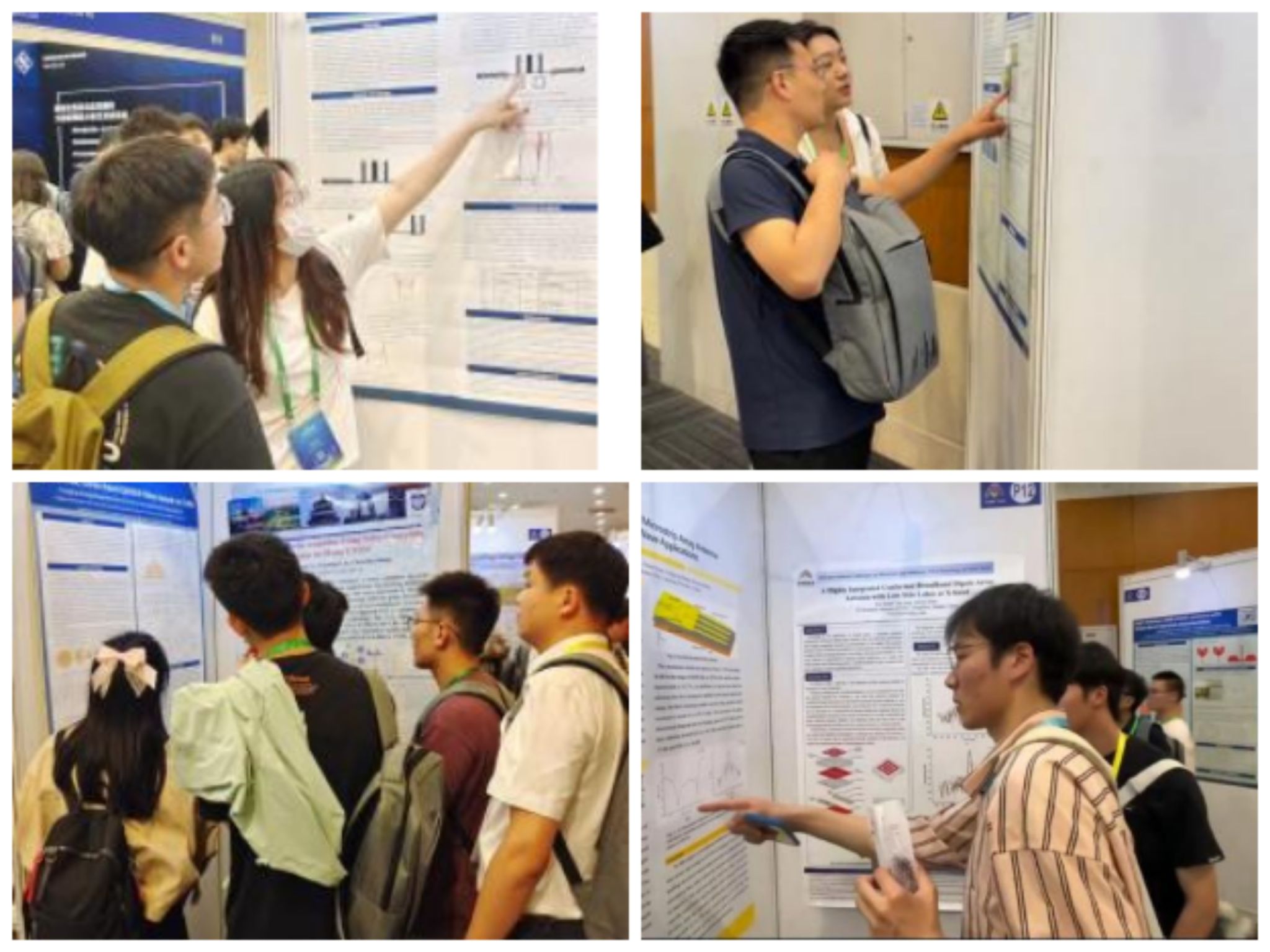 会议期间,苏东蕊、杨云姝和杨泽维3位同学分别将已录用论文《具有低耦合的紧凑型超宽带MIMO天线设计》、《采用发夹谐振器改善阻带特性的双极点毫米波带通滤波器》和《一种应用于SWB的金属网格透明MIMO天线》以中文海报张贴的方式在NCMMW会场中进行宣讲并与各高校同行进行深入的探讨交流。