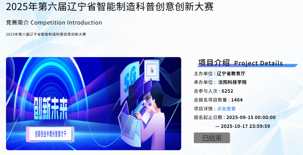 2025 年 12 月 5 日,由辽宁省教育厅主办、沈阳科技学院承办的辽宁省第六届智能制造科普创意创新大赛年度总决赛在沈阳科技学院顺利落幕。本次大赛吸引全省 53 所学校积极参与,累计报送作品 2198 项,其中 1464 项作品完成省平台注册报名流程。赛事遵循 “报名→校赛选拔→省赛初赛→决赛答辩” 的递进式评审机制,经多轮严格评审,最终 680 项优秀作品脱颖而出斩获奖项,并齐聚总决赛现场展开终极角逐。