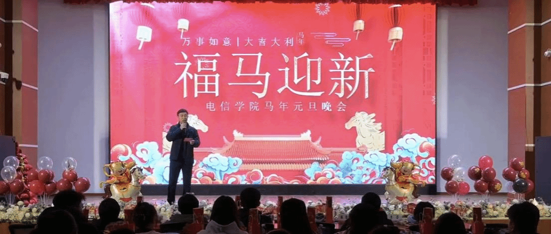 晚会伊始,孟书记为全体师生送上新年的美好祝福。他回顾了学院过去一年在学科建设、人才培养、师生发展等方面取得的丰硕成果,向辛勤耕耘的教职工和奋力拼搏的学子们致以诚挚感谢。孟书记强调,学院的发展离不开每一位电信人的同心协力,希望师生们在新的一年里,秉持“笃行实干、奋勇争先”的精神,以马年的昂扬斗志,在教学科研、求学成长的赛道上勇毅前行,共同书写学院高质量发展的崭新篇章。