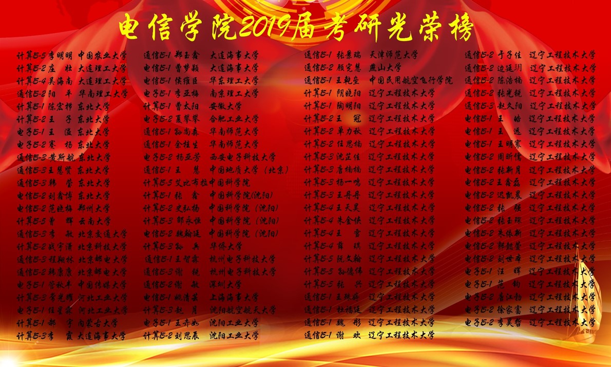 党政领导和全院教师十分重视本科生考研工作,在2019届本科生考研工作中喜获丰硕成果,考研录取人数和录取率再创新高。学院共有166人报名参考,到目前为止共有91人被成功录取,考研比例为26%,其中有33人被大连理工大学、东北大学、北京邮电大学、北京交通大学等985、211院校录取。