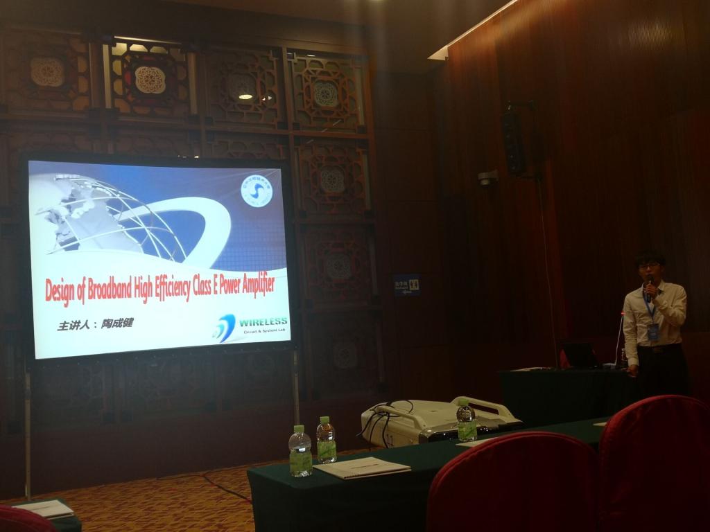 “无线通信电路与系统”射频微波研究室的两位研究生陶成健和刘婧分别投稿了这次会议论文,其中陶成健同学写的《宽带高效率E类功率放大器的设计》进行了口头宣讲并解答参会者所提出的问题,刘婧同学写的《一种新型类Sierpinski分形超宽带天线》粘贴了展览海报并解答参观者所提出的问题。