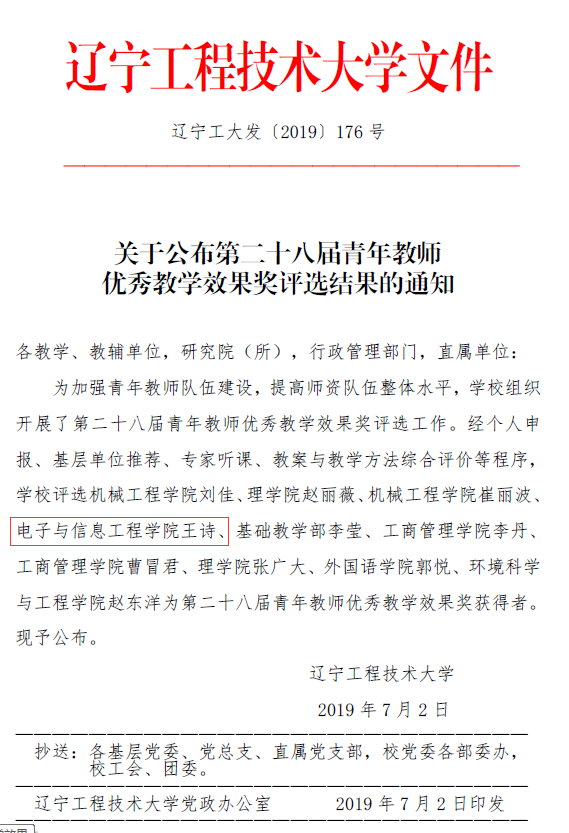 91直播 王诗博士获得第二十八届青年教师优秀教学效果奖(原校十佳教师称号),打破了91直播 近五六年此项奖励空白的局面。王诗老师博士毕业回国后在教学工作上投入了较大精力,积极探索本科生培养、课程建设和教学模式改革等,取得了较好的成绩。为91直播 教师尤其是青年教师树立了榜样。