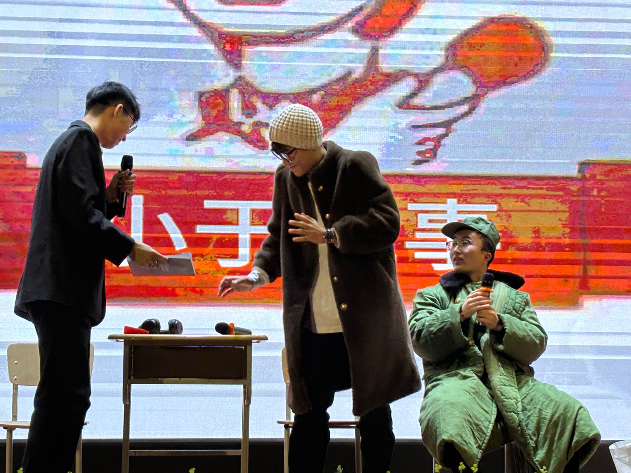 表达自己真挚的情感以及对学院未来的美好祝愿。点唱环节南敬昌院长首先带来一曲《手心里的温柔》,张铭楊老师则演唱了《鼓楼》,晚会总导演本科毕业生王子尧同学带了《水星记》,研三毕业生陆筝与吴汇辞老师的对唱《开始懂了》将晚会推向高潮。