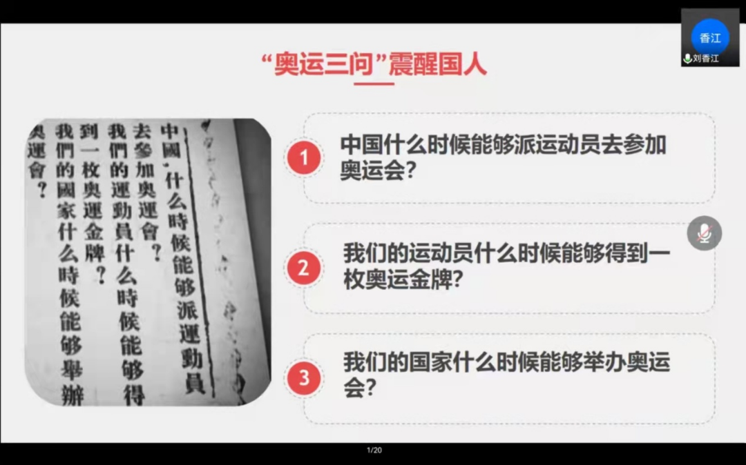 学生党支部于3月11日晚七点以网络会议形式组织全体学生党员开展了以“从奥运征程,看中华崛起之路”为主题的专题理论学习暨“学生党员开学第一课”。