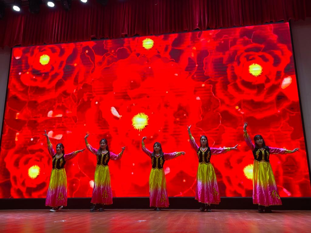 演出在电吉他表演《别叫我达芬奇》中拉开序幕,带动起现场氛围。随后,新疆民族舞蹈《跳起来》带我们体验了异域风情,使现场氛围更加热烈。一曲《强国一代有我在》充分展现了青年热爱祖国的热血。