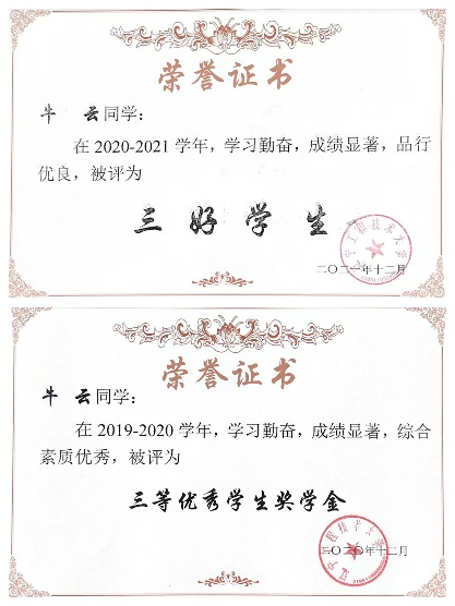 射频微波兴趣小组负责人。多次获校级二等、三等奖学金,“优秀志愿者”,“校三好学生”称号等荣誉。已获计算机三级证书,CEAC证书等。现推免至北京交通大学攻读硕士研究生。