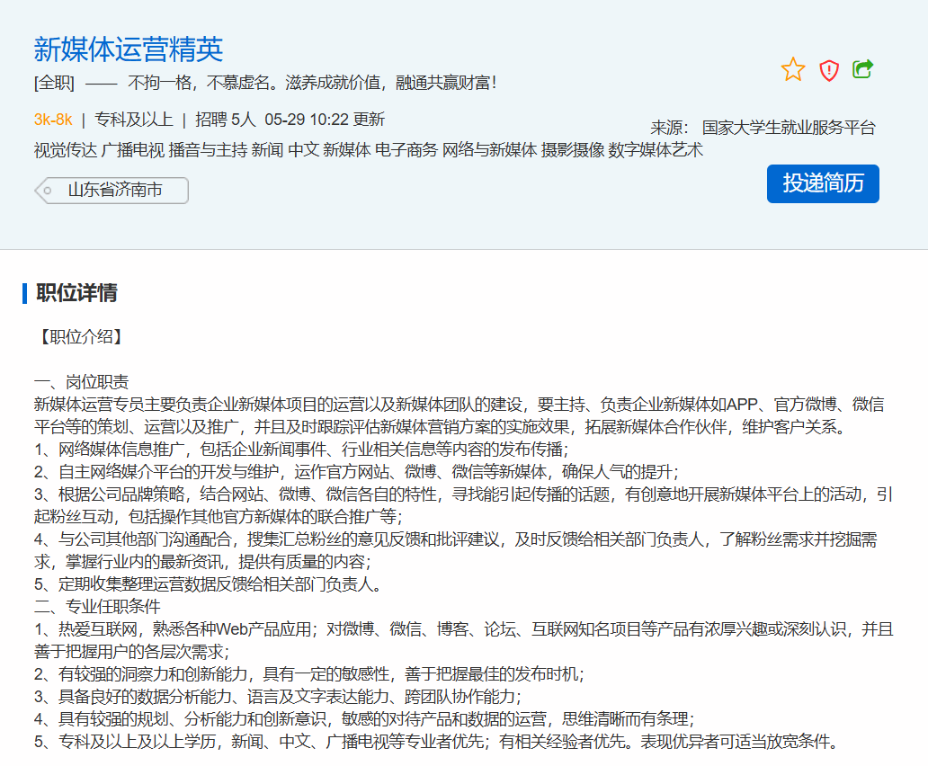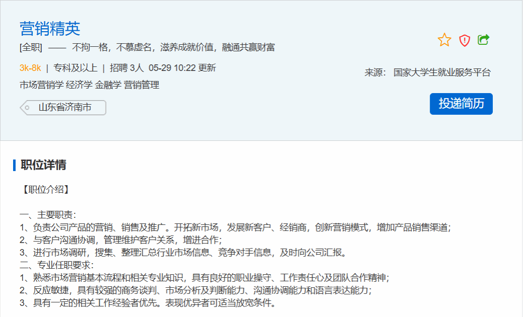 [来源]:国家大学生就业服务平台