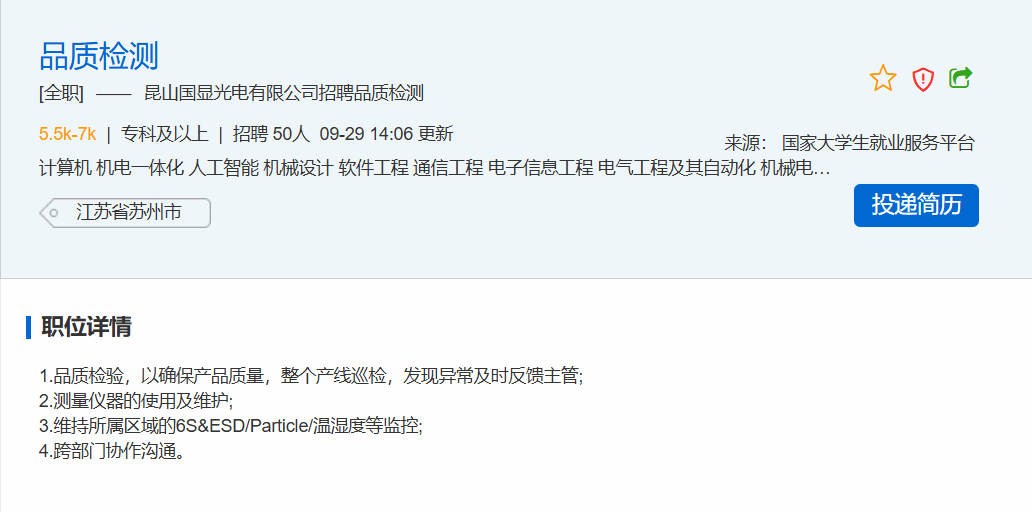 昆山国显光电有限公司线上招聘 | 专科及以上学历