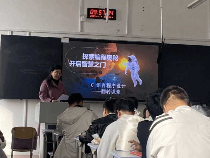 “当屏幕上的软件、游戏跃然眼前,你是否好奇它们的诞生密码?”11 月 6 日上午,静远楼 213 教室内,李蓓蕾老师以一个引人深思的问题,拉开了《C 语言程序设计》翻转课堂的序幕。这场由学生主导的课堂,让思维在互动中碰撞,让知识在分享中扎根。