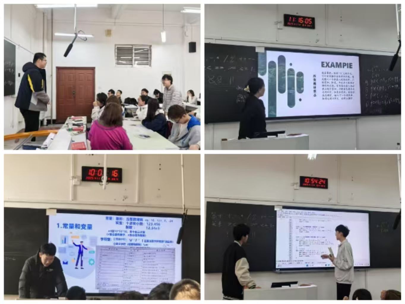课堂上,各个小组依次登场,带来了风格各异的精彩讲解。有的小组制作了逻辑清晰、图文并茂的 PPT,将复杂的语法知识点拆解为通俗的案例;有的小组则选择板书推演,一步步梳理代码逻辑,让台下同学直观感受编程思路;更有小组融入趣味设计,有同学创新点名方式,通过随机生成行数和列数确定互动对象,瞬间点燃课堂气氛。不少同学台风沉稳又不失风趣,讲解时主动与台下互动提问,台下同学积极回应、踊跃发言,课堂上时而响起会心的笑声,时而响起热烈的掌声,知识在轻松活跃的氛围中被牢牢掌握。
