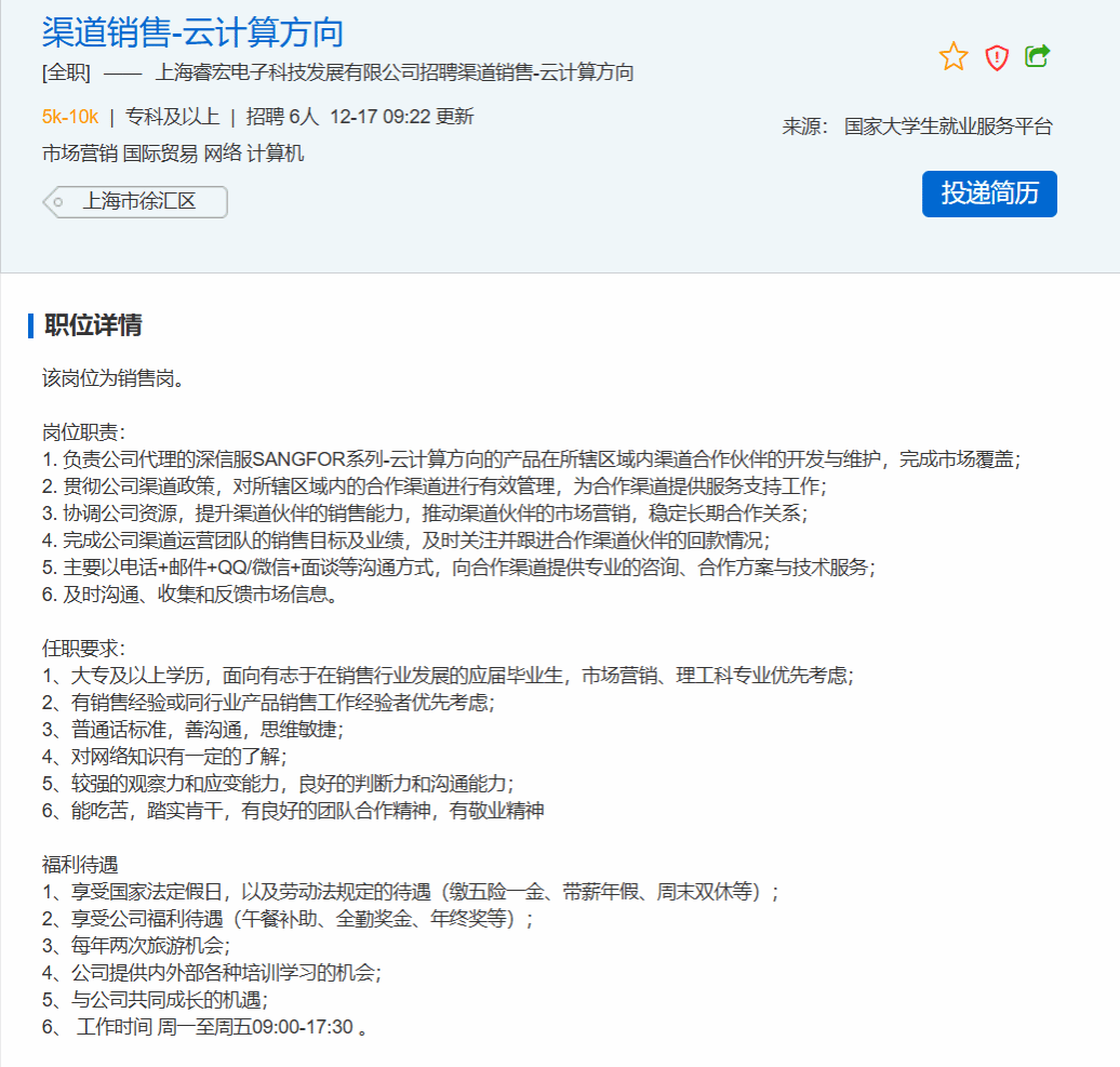 上海睿宏电子科技发展有限公司 | 专科及以上学历