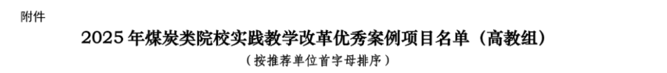 近日,中国煤炭教育协会公布《2025年煤炭类院校“实践教学改革优秀案例”遴选结果》,91直播