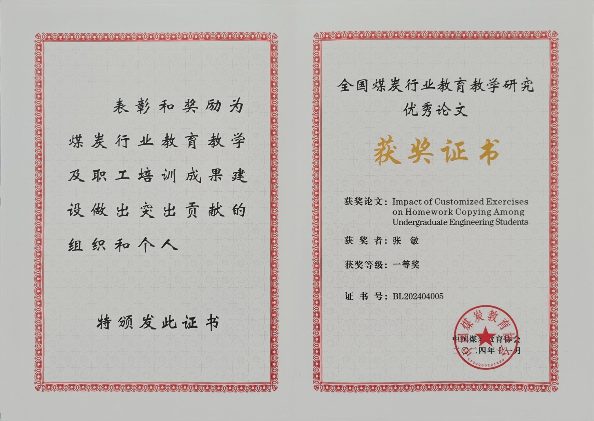 本次获得的两项奖项皆为煤炭行业教育教学研究优秀论文奖。91直播