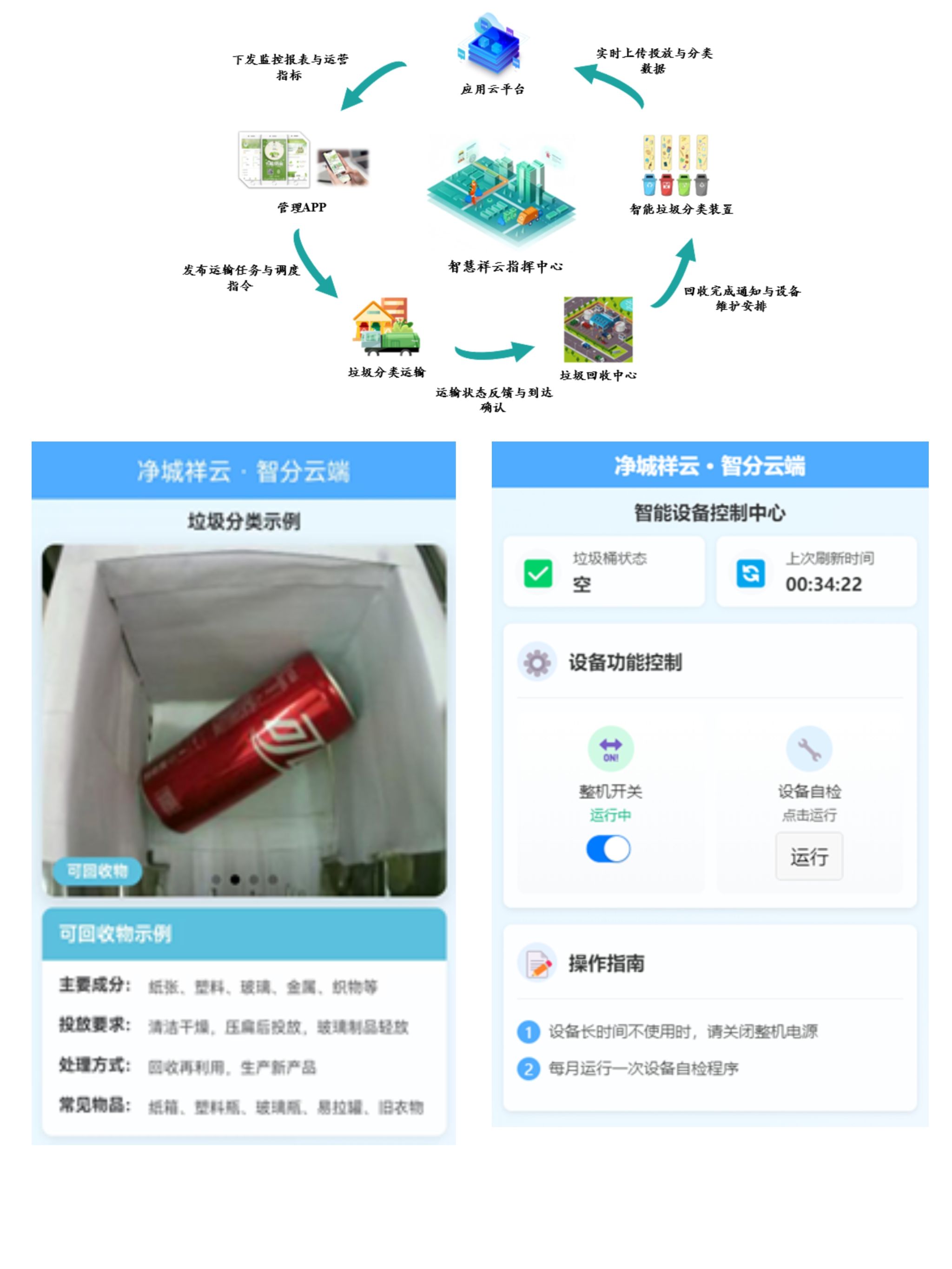 图1 净城祥云APP整体架构及部分界面